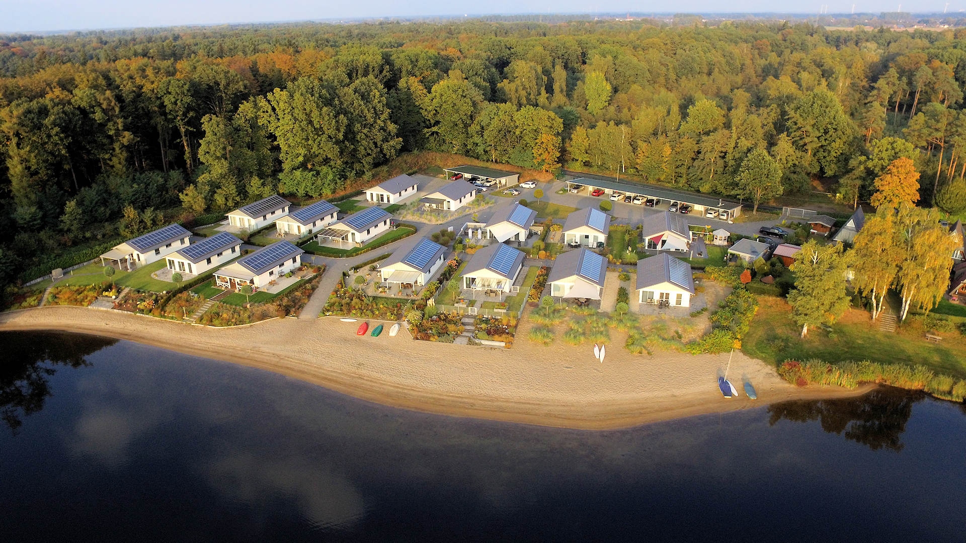 In de jaren 2015 tot 2016 hebben we 15 energiezuinige vrijstaande huizen gebouwd in het Fereinpark "Wolfsee"