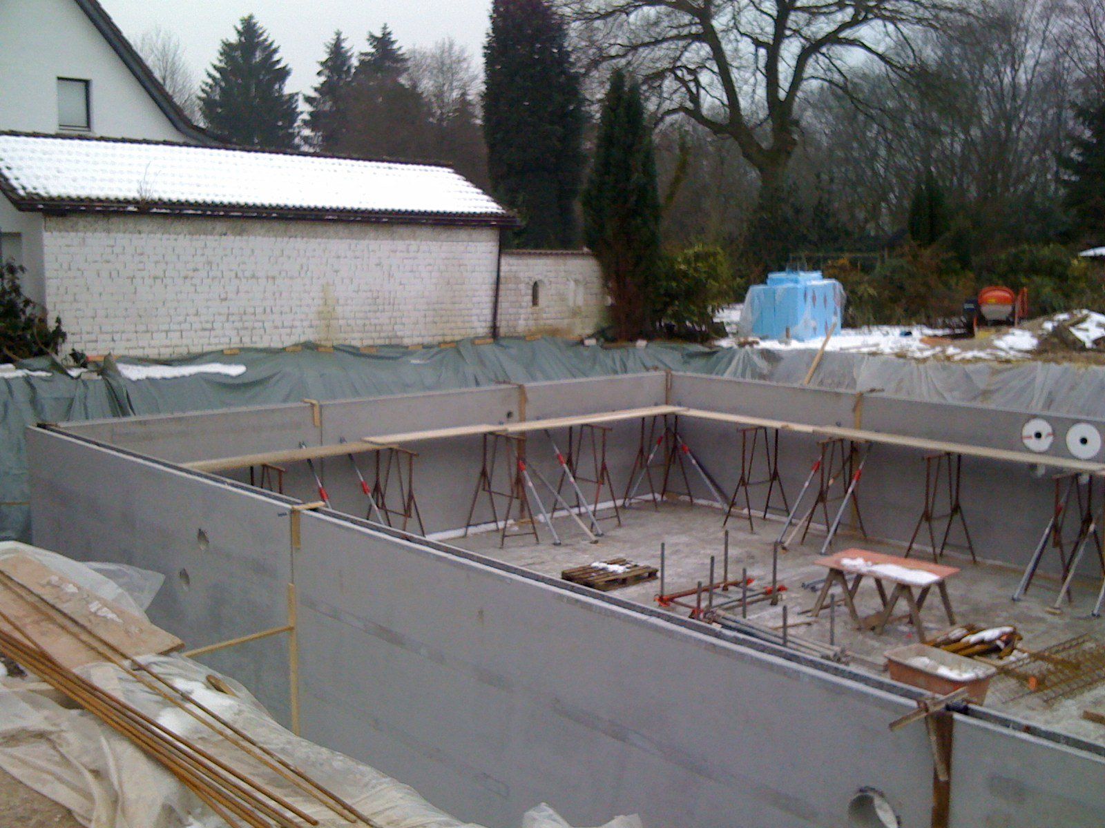 Alternativ wird der Kellers einschl wasserdichter, gedämmter Wanne, der Kellerdecke und der Kellertreppe erstellt.