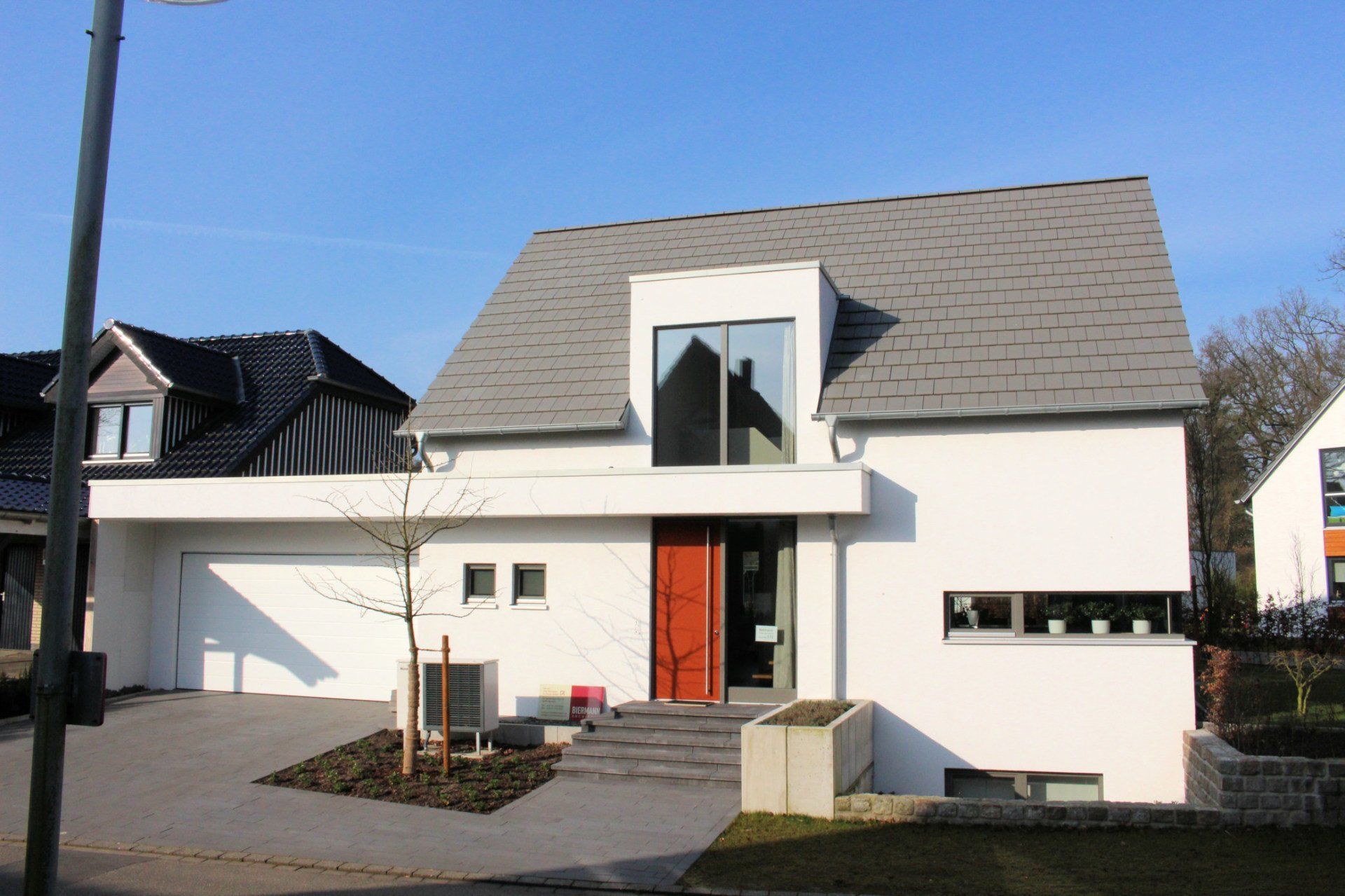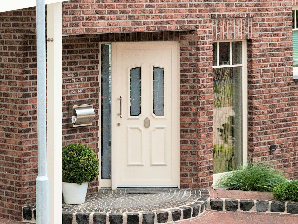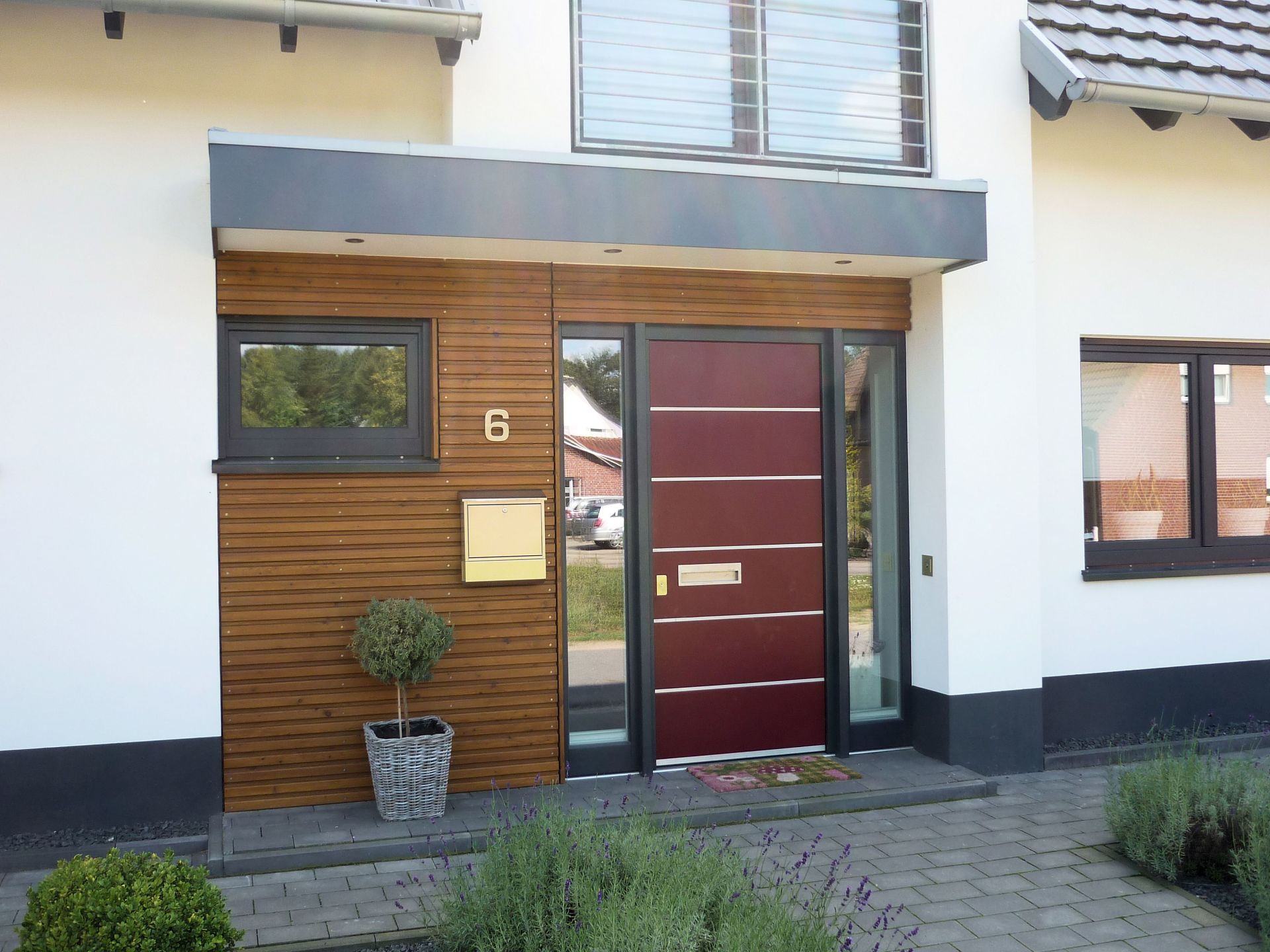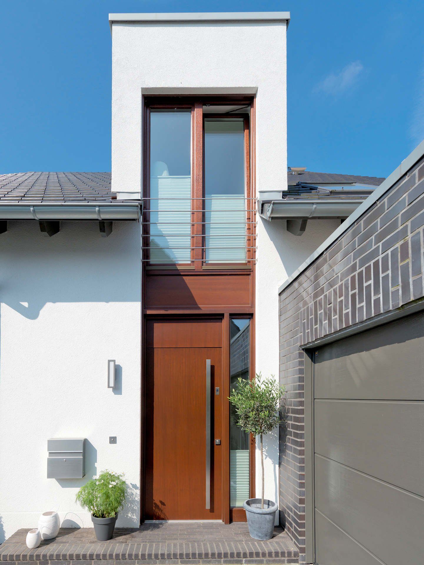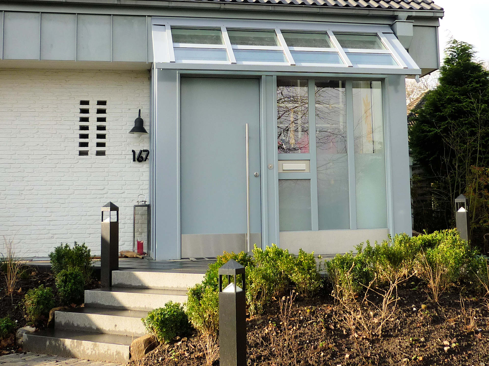 De luifel van de voordeur wordt ook vaak uitgevoerd als een uitstekende dakkapel boven de ingang.