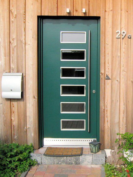 Met glasvullingen in het deurblad of gesloten. Met metalen inzetstukken of houtvullingen.
