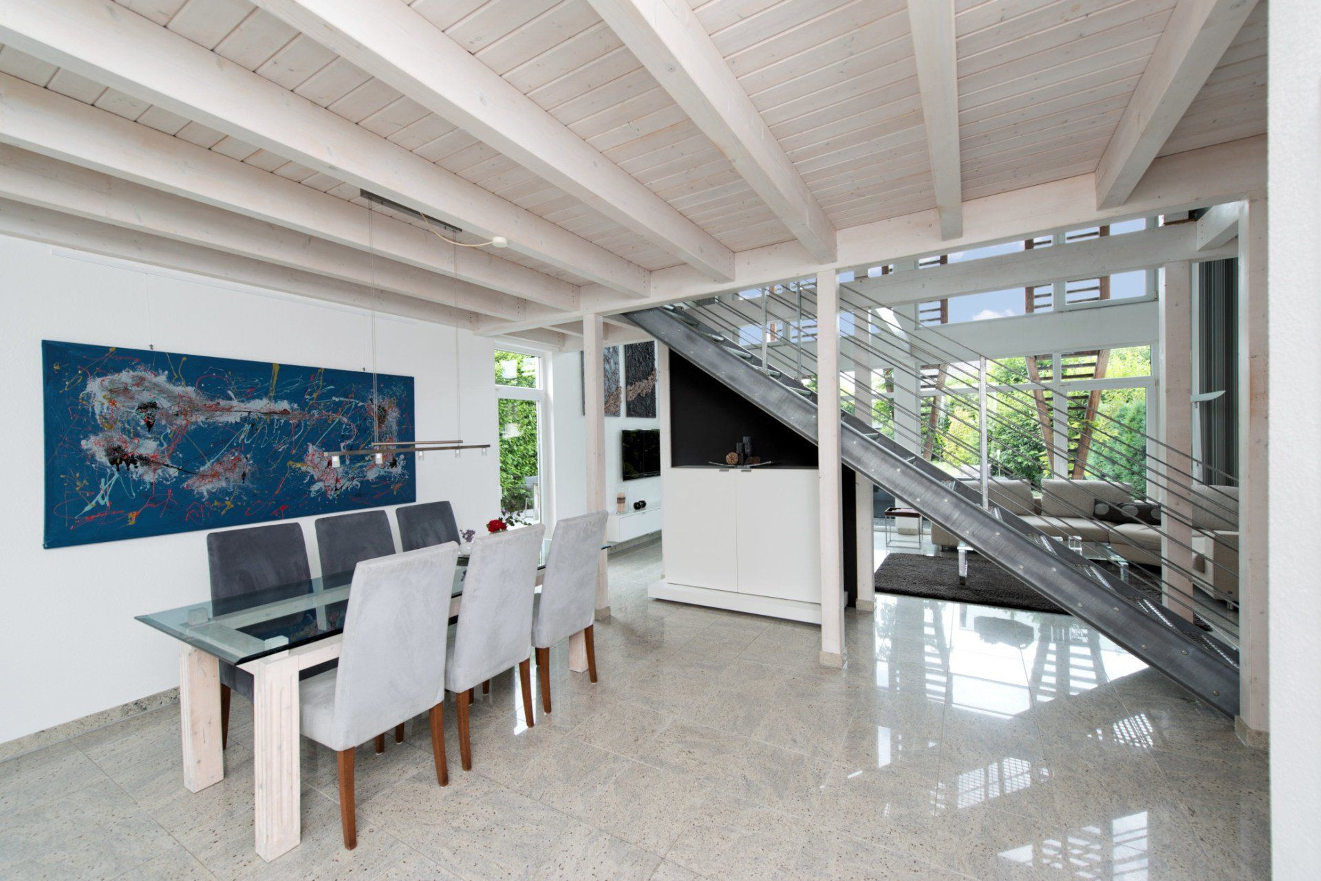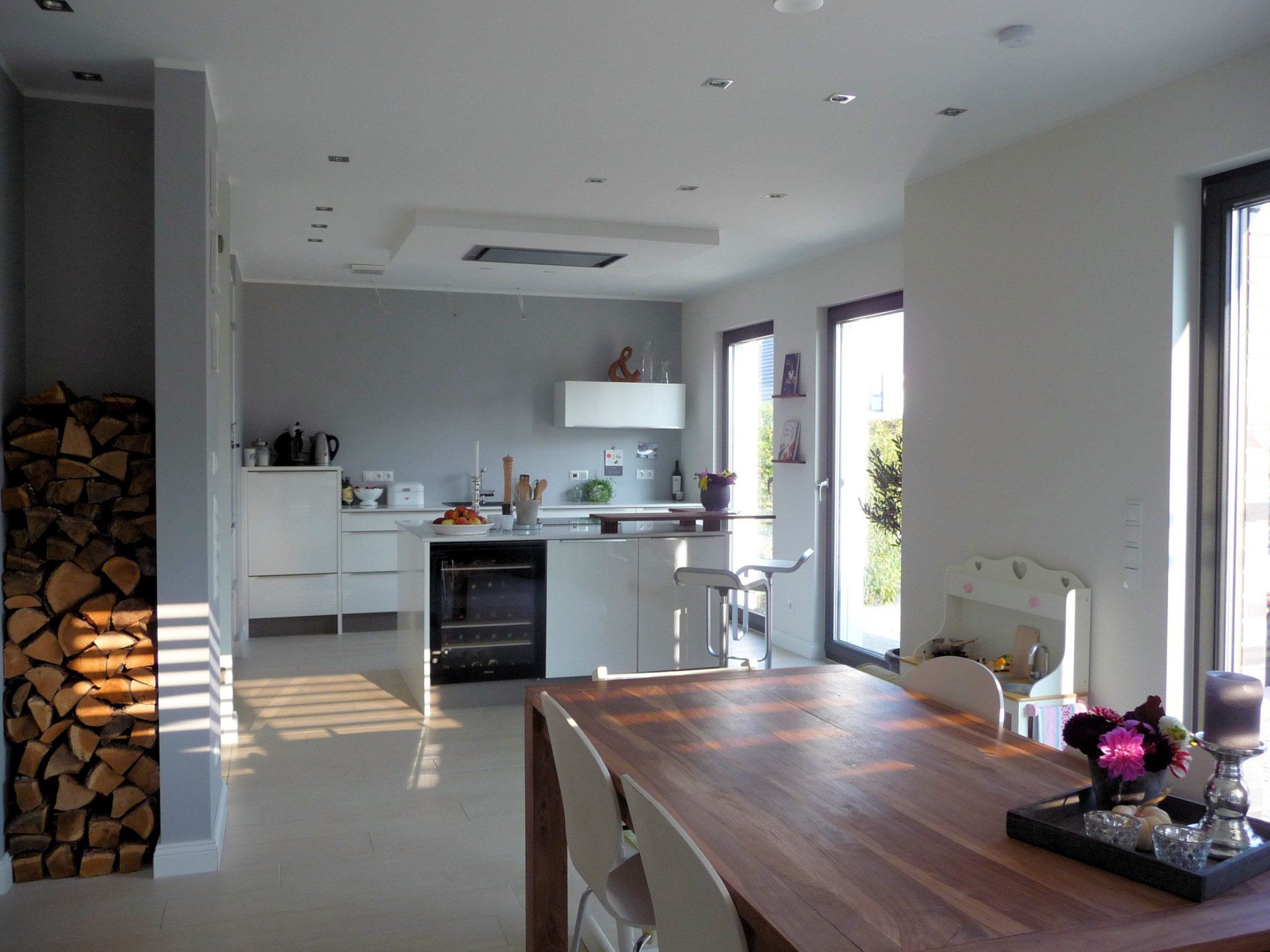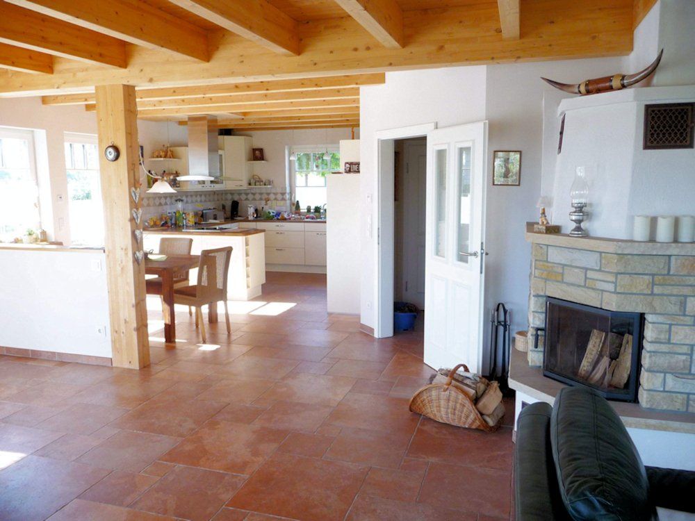 Massieve houten plafonds of betonnen plafonds zijn ook mogelijk in het houten huis van Kampshoff.